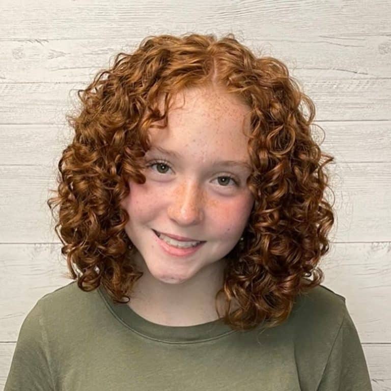 This hairstyle boasts vibrant shoulder-length ringlets that cascade beautifully, showcasing a playful and textured aesthetic. The rich, warm color enhances the curls’ bounce and depth, making it an ideal choice for those looking to embrace their natural hair while adding an element of fun. Perfect for individuals wanting a low-maintenance yet striking look, this style offers both confidence and charm.