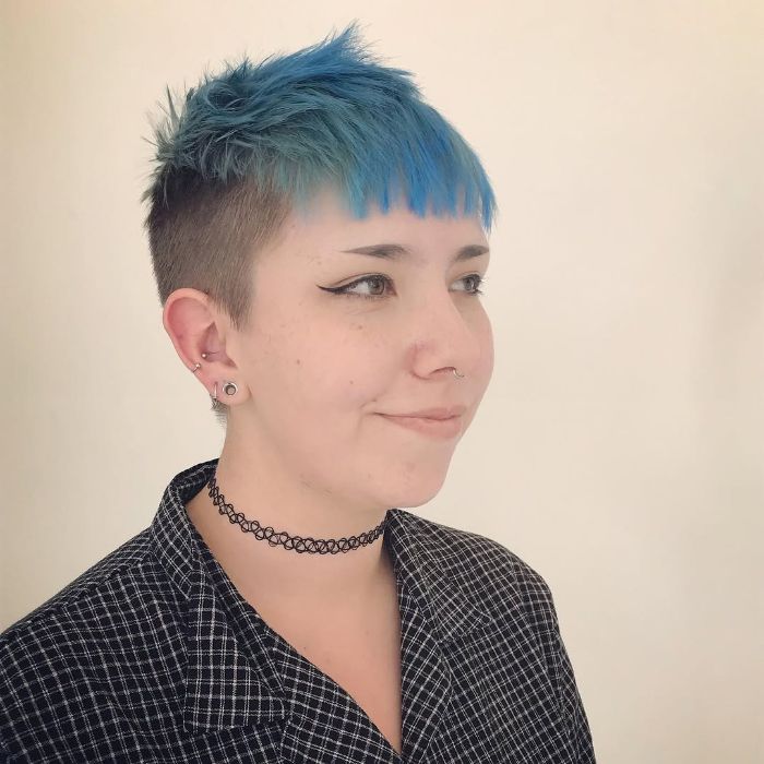 45. Bright Blue Short Choppy Hairstyle with Bangs