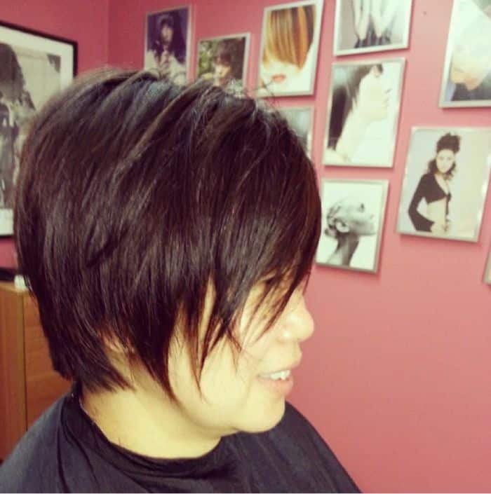 23. Asymmetrical Short Choppy Cut with Highlighted Layers