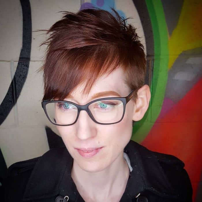 This style features a short, choppy haircut with textured layers that create an effortlessly tousled look. The striking addition of red highlights adds a youthful vibrancy, making it perfect for those who want to express their individuality with flair. Ideal for creative personalities, this haircut offers a fun, low-maintenance option that can easily transition from casual to more polished scenes.