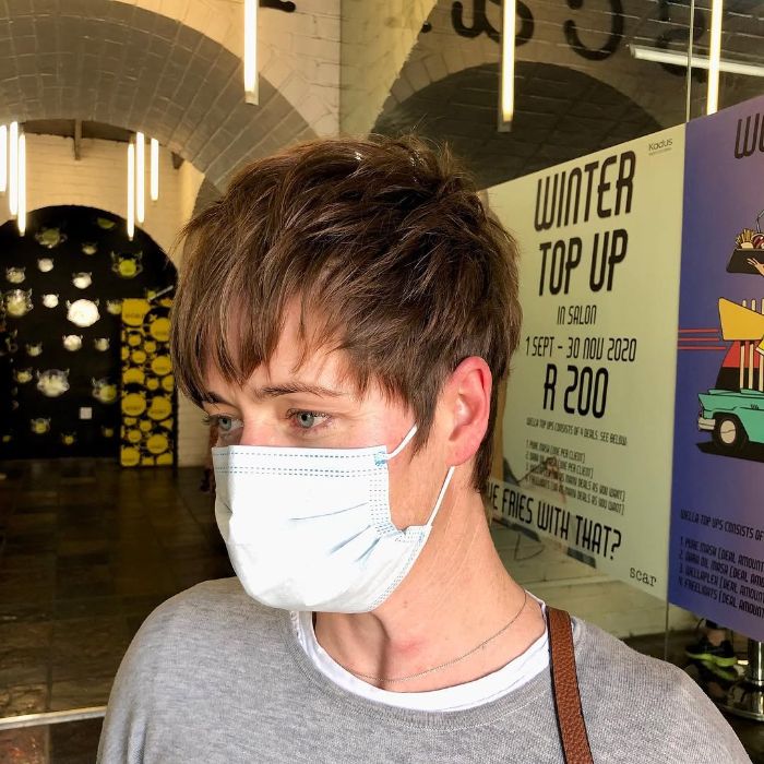 This haircut features a playful, short choppy style characterized by soft, textured layers that frame the face beautifully. The slightly tousled look and subtle volume at the crown add a lively touch, making it perfect for those who want a low-maintenance yet stylish appearance. Ideal for individuals seeking to express their fun and adventurous personality, this hairstyle works particularly well with informal attire and everyday settings.