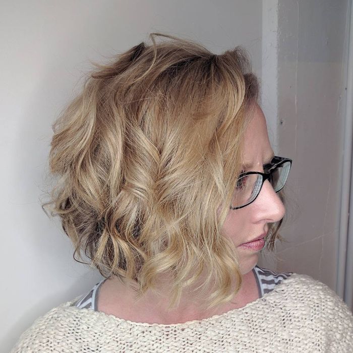 This hairstyle features structured, choppy curls that add volume and playful texture to the look. The soft, rounded shape frames the face beautifully, making it ideal for those who want a low-maintenance style that exudes a fun, youthful vibe. Perfect for individuals who embrace versatility, this cut can transition effortlessly from casual to more polished settings.
